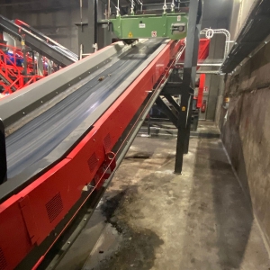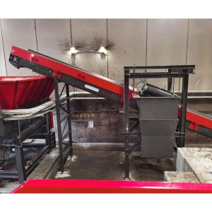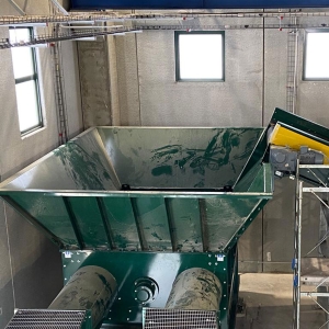 Macchina per la ricezione e la miscelazione della FORSU o del verde / ramaglie con nastro di estrazione per ottenere la miscela da mandare in maturazione....
