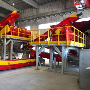Macchina a più stadi per la separazione, attraverso reti di vagliatura di forme e dimensioni, differenti di materiale in entrata (RSU) o materiale organico (compost)....
