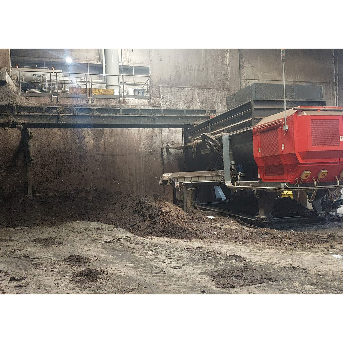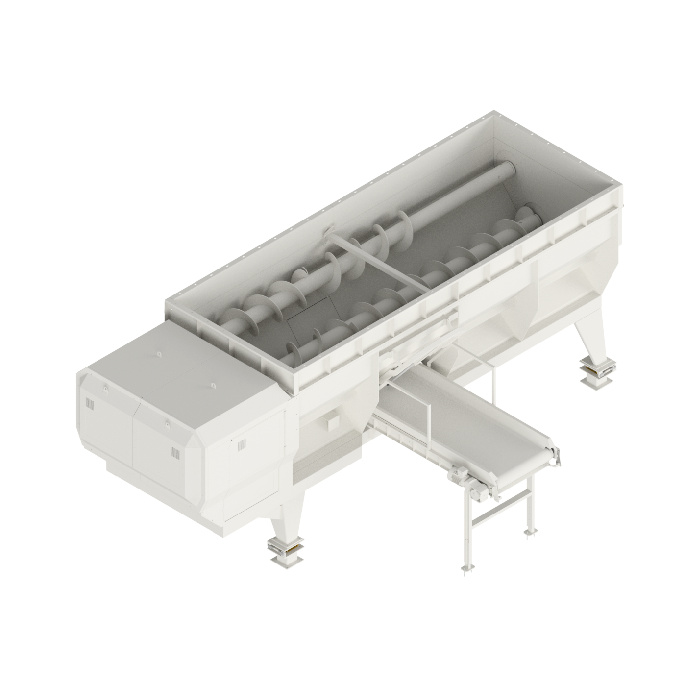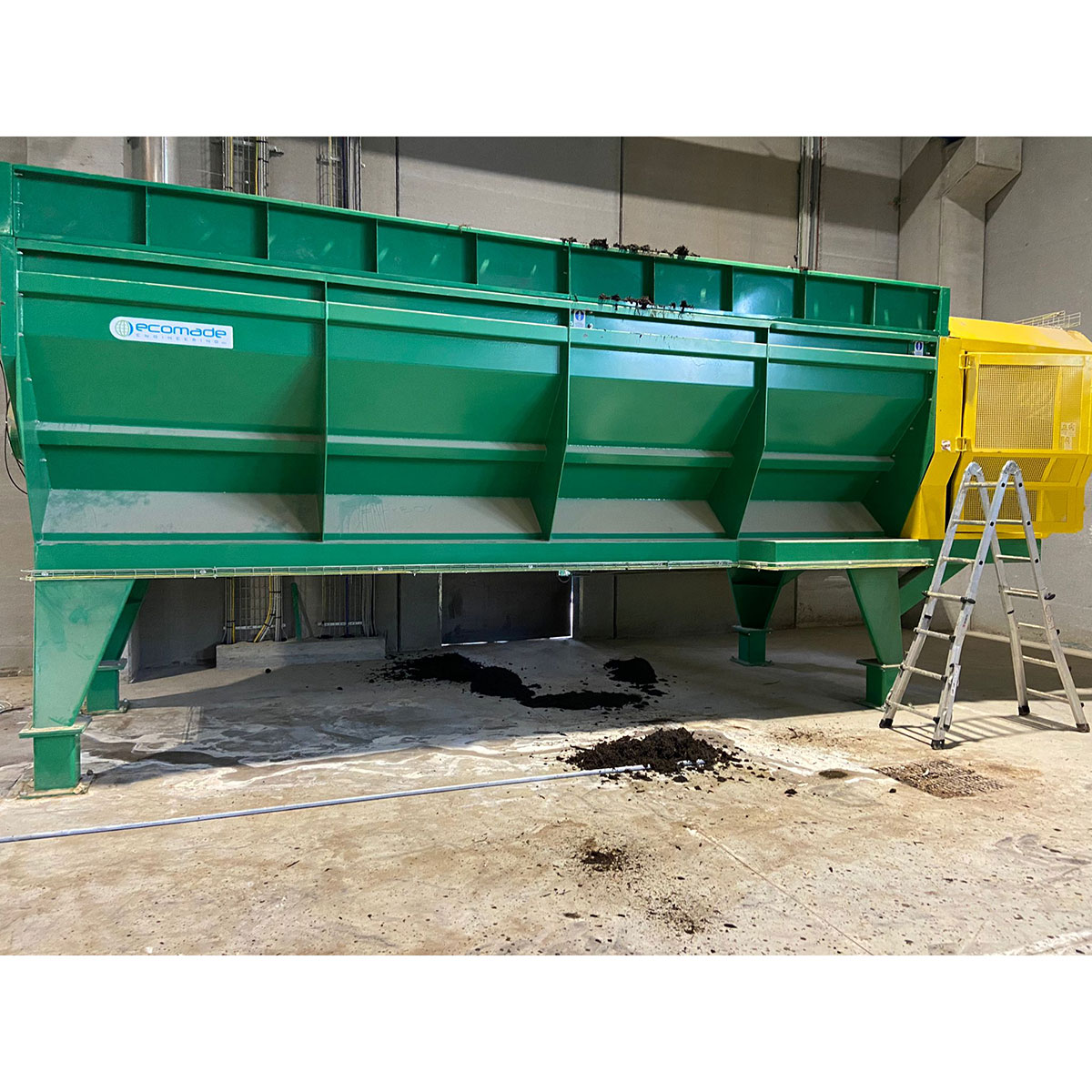 Macchina per la ricezione e la miscelazione della FORSU o del verde / ramaglie con nastro di estrazione per ottenere la miscela da mandare in maturazione.