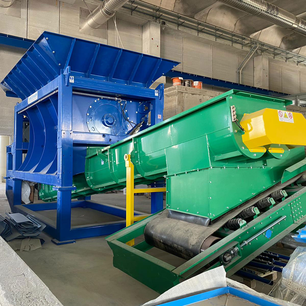 Macchina realizzata per l’apertura dei sacchi e la triturazione del rifiuto umido o della frazione verde / ramaglie (con sezione massima 40-50 mm).
